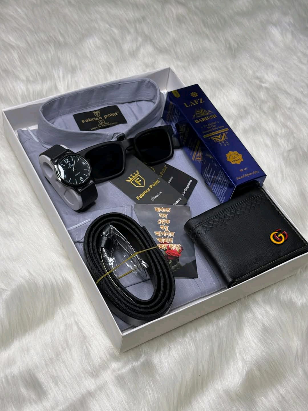 👉সবকিছু এক বক্সে: শার্ট থেকে শুরু করে ঘড়ি, পারফিউম—সবই পাচ্ছেন একটি প্রিমিয়াম প্যাকেজে।